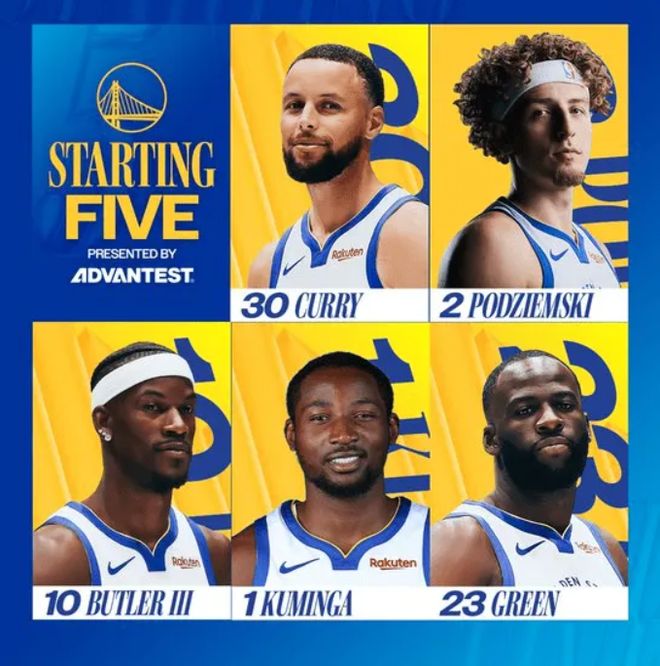 今天比赛,首发阵容方面,勇士队这边,科尔排出的最新首发五人组为:斯蒂芬-库里、乔纳森-库明加、吉米-巴特勒、布兰丁-波杰姆斯基、德雷蒙德-格林;步行者队这边,哈利伯顿继续缺阵,首发阵容则为:昆顿·杰克逊、阿龙·内史密斯、帕斯卡尔·西亚卡姆、贾雷斯·沃克、以赛亚·杰克逊。