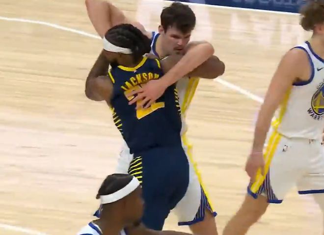 易边再战,昆顿-杰克逊外线三分再中,步行者自首节后首次领先勇士。随后杰克逊抢篮板被库明加犯规,与追梦格林互喷垃圾话,又开始搞心态了。库明加背打沃克,一个箭步过掉防守后完成双手暴扣,勇士将分差缩小至2分。库里持球再次被杰克逊掏球完成抢断,后者反击暴扣得手,打停勇士。波杰姆斯基反击追身三分命中,勇士替补阵容起势,巴特勒三节末压时间,单挑西亚卡姆转身上篮打成准压哨2+1,三节打完,勇士88-82再次领先步行者6分。