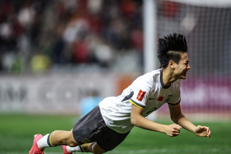 此役毛伟杰继续首发出战,下半时第48分钟,蒯纪闻左路摆脱防守送出传中,后点的毛伟杰抢点头球破门,帮助中国队扩大比分优势。进球后的毛伟杰十分激动,虽然滑跪时摔倒,但他依然心情不错。
